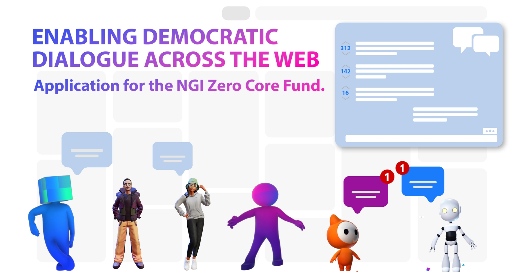 Weblin.io is applying for the NGI Zero Core Fund to expand its capabilities in fostering democratic dialogue across the web. We seek to transform every web page into a potential meeting place where users can engage in meaningful conversations without the need for registration or sacrificing their privacy.