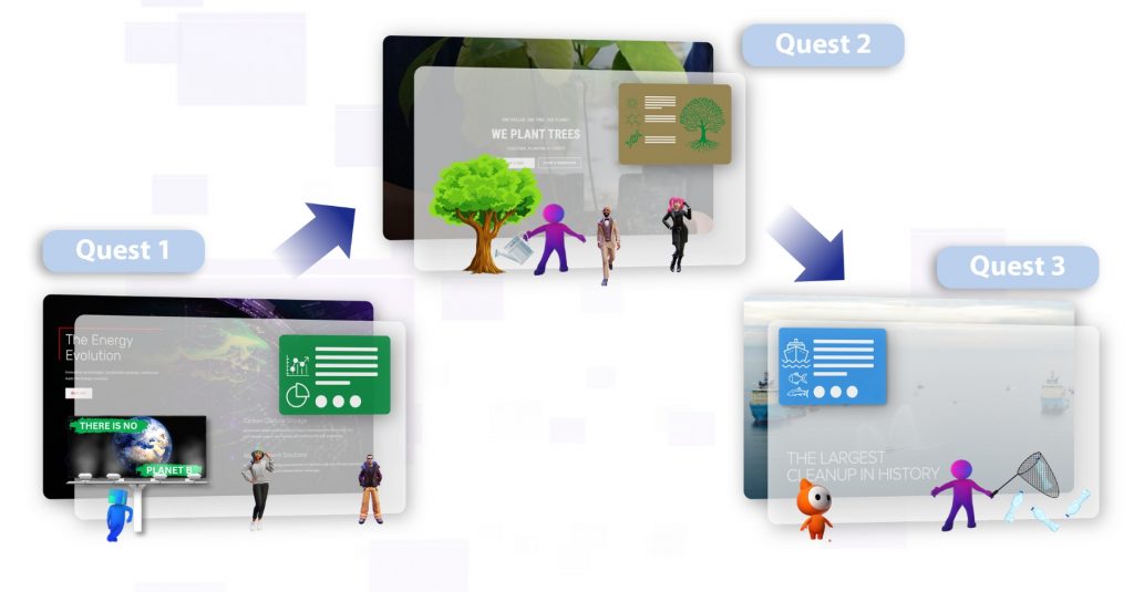 During these engagement tours, users complete tasks, receive information on various topics, and connect their avatars with your brand and products.